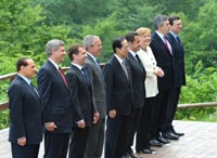 Por su parte, el G8 inauguró su retórica climática en 2005, con Tony Blair al frente (109) y Angela Merkel al fondo aunque, como hemos visto, no fue hasta 2009 cuando explicitó el objetivo de los 2 ºC (9).