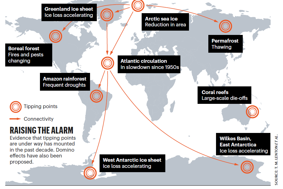 “Es un verdadero sobresalto darnos cuenta de que los puntos críticos que pensábamos que podrían suceder en el futuro estén ya en marcha … [se trata de] una amenaza existencial a la civilización.” – Timothy M. Lenton784