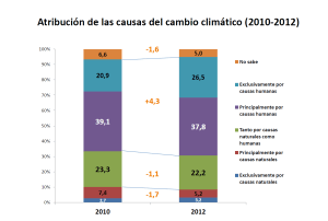 Evolució de la percepció de l’atribució de les causes del canvi climàtic a la població espanyola (estudi Mapfre, 2012 – ref. 96)